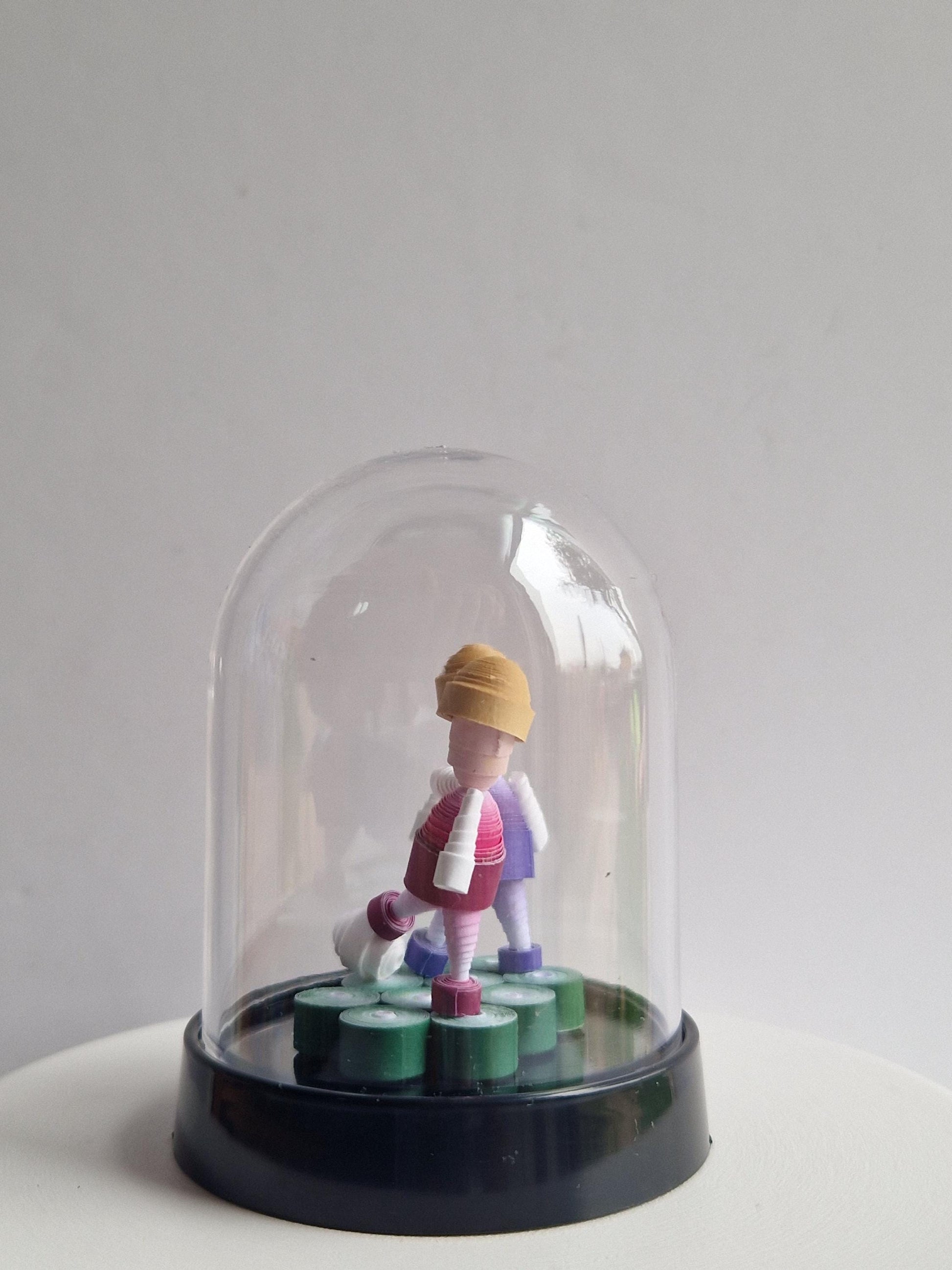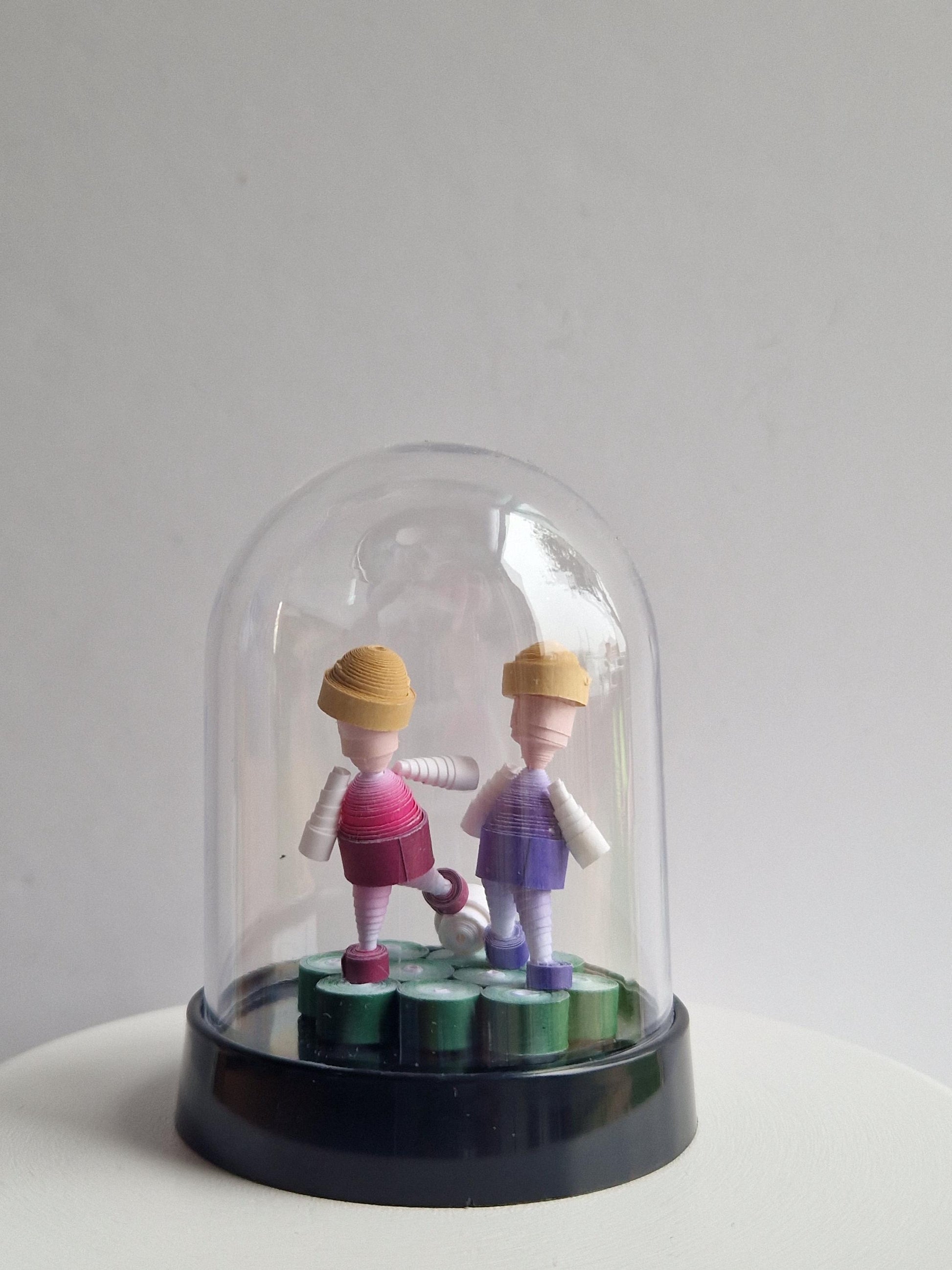 Quilled Paper 3D football scene Decoration in a small cloche jar.