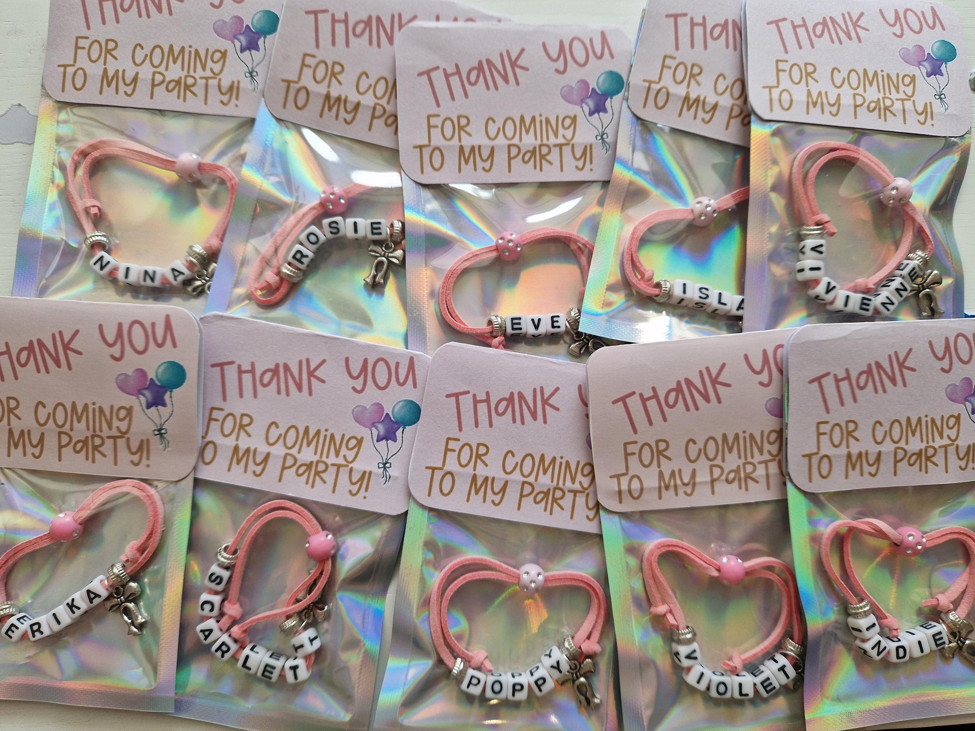 A fabulous party bag filler to have are these personalised Name bracelets. Perfect for girls and boys birthday parties, for everyone to have something special to take home (and it takes the pressure off providing something different for older children).
