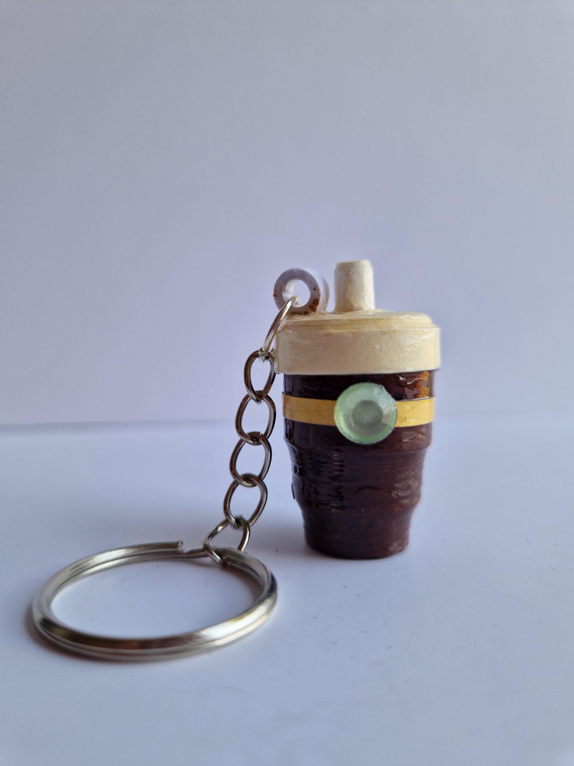 Quilled Paper 3D Coffee Travel Cup Keyring. A cute little cup, shaped by hand using the traditional artwork of paper quilling, also known as Filigree.
