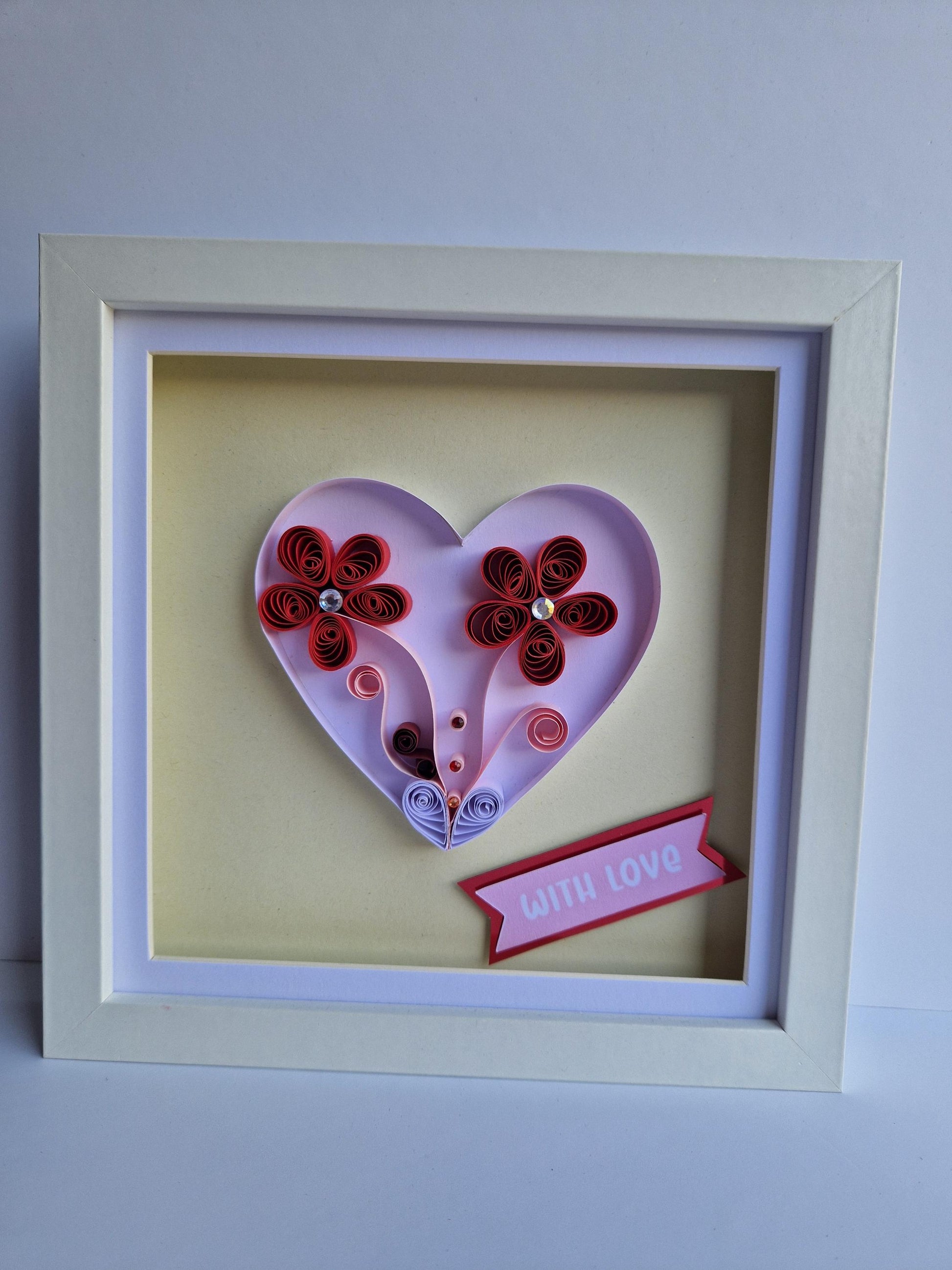 Handmade Quilled Paper Flower Heart in Frame: Unique Filigree Wall Art