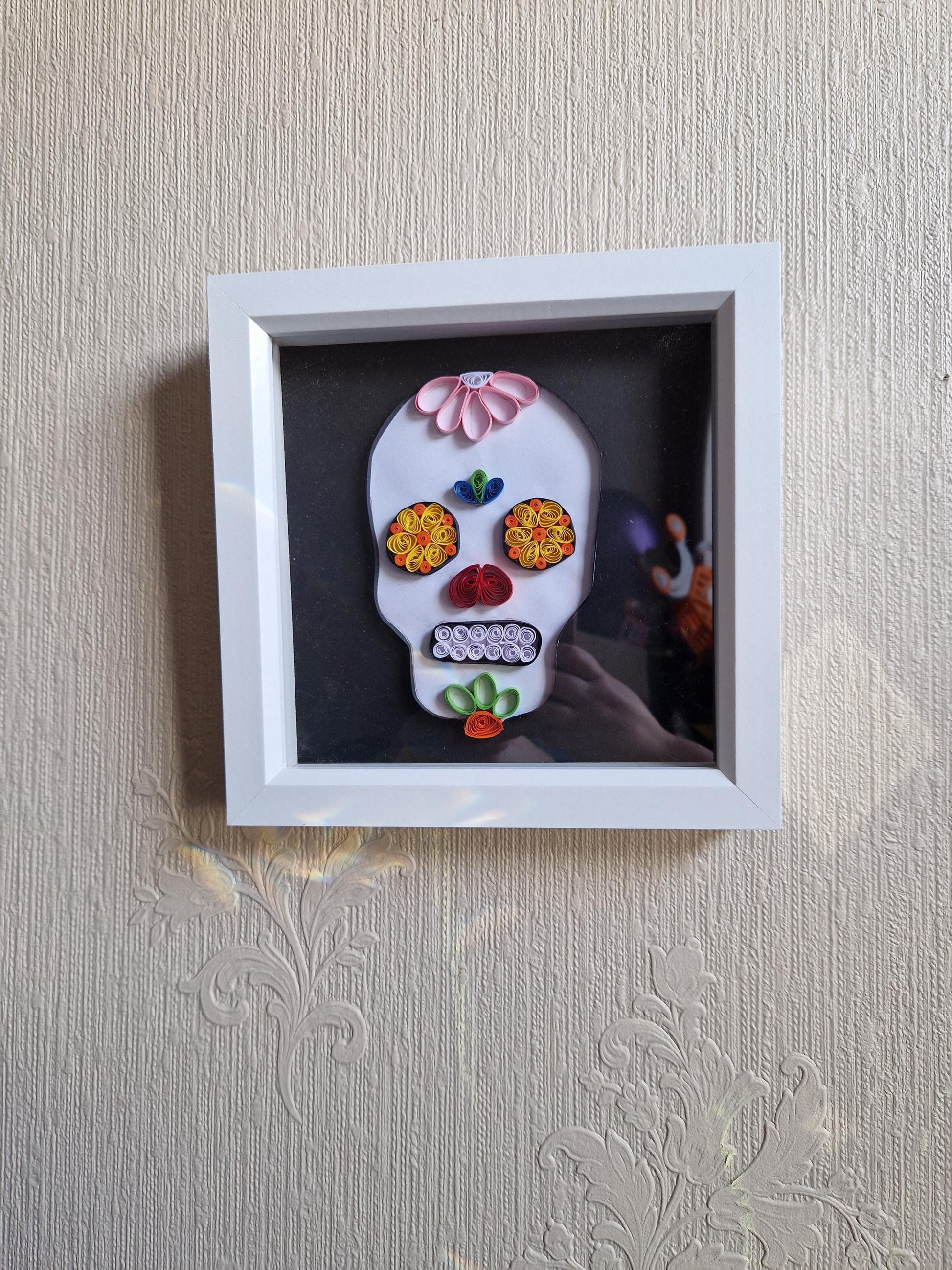 Handmade Quilled Paper Sugar Skull Art: Colorful Halloween Wall Decor